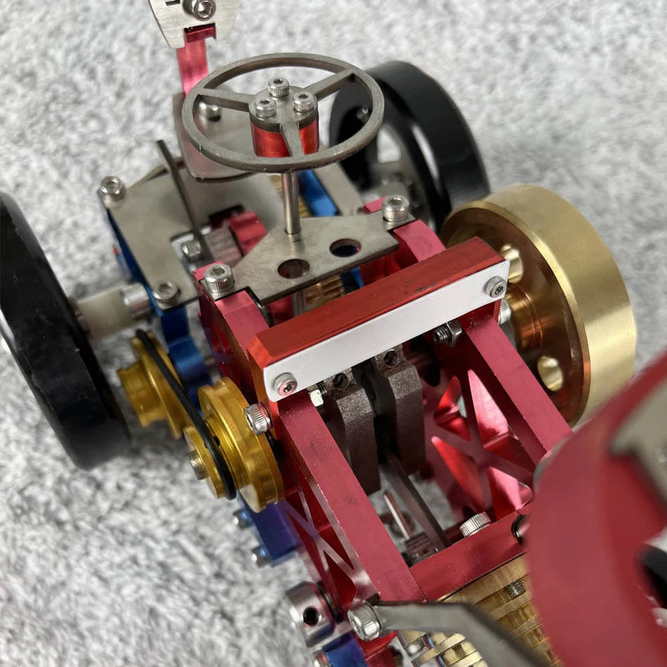 Product selling point introduction: The product is made of aluminum alloy CN on a large area, ensuring good texture and quality. The overall appearance adopts this year's popular retro style design, powered by a vacuum ignition Stirling machine. The appearance and the sound of the engine during operation are both quite authentic and restore the characteristics of retro machinery. The four wheels are made of fiery red Tomahawk wheels, with aluminum alloy CNC precision carving.